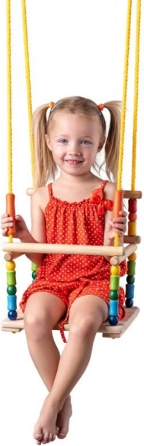 Stijlvolle houten kindersschommel met een stevige houten zitting, verstelbare ophanglengte van 160–220 cm en een maximale draagkracht van 35 kg. Een uitstekende keuze voor binnen en buiten, met nadruk op veiligheid en kwaliteit.