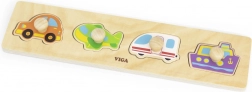 Deze robuuste houten inlegpuzzel met kleurrijke vervoermiddelen is een ideale eerste logische speelgoedactiviteit. Elk stukje heeft een praktisch houten knopje voor eenvoudig vastpakken, zodat kinderen leren de vormen correct in de bijbehorende uitsparingen te plaatsen en tegelijk hun coördinatie en concentratie oefenen.