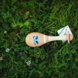 De houten kindermaraca is ontworpen om kinderen kennis te laten maken met de wereld van geluiden. Geschikt voor kinderen vanaf 5 maanden en helpt bij de ontwikkeling van muzikale en coördinatieve vaardigheden. Door beweging met lichte muzikale begeleiding kan het bijdragen aan het verbeteren van motorische vaardigheden.