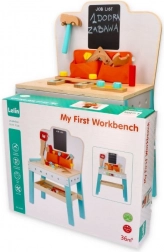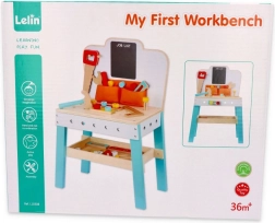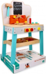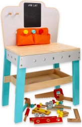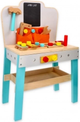 De kinder houten werkbank met bord is een ideaal cadeau voor kleine klussers. De tafel bevat aangepast houten gereedschap, zoals een hamertje, zaag en sleutel, waarmee kinderen verschillende constructie- en reparatieactiviteiten kunnen nabootsen. Met het JOB LIST-bord kunnen kinderen hun projecten plannen en werkorganisatie leren. Praktische gereedschapsvakken en planken bieden voldoende opbergruimte.