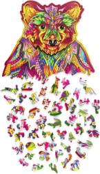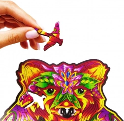 Ontdek de betoverende houten puzzel in de vorm van een beer, die artistiek design, kwalitatieve houten stukjes en een leuke uitdaging voor 14+ combineert. Leg een kleurrijk beeld vol details en verander het in een decoratief accessoire voor je interieur.