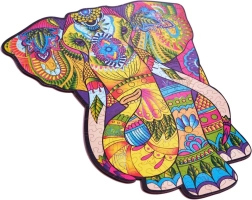 Deze gedetailleerd uitgewerkte olifantenpuzzel van hoogwaardig hout betovert met verfijnde patronen en diepe kleuren. Ideaal voor tieners en volwassenen die op zoek zijn naar stijlvol vermaak én een designaccent voor het interieur.