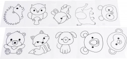 • 10 sjablonen met schattige dieren + een schone folie voor eigen ontwerpen