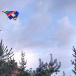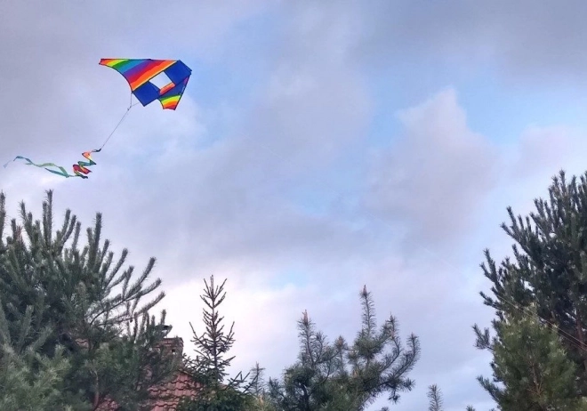 Deze vlieger pronkt met heldere regenboogstrepen die een betoverend visueel effect creëren tijdens het vliegen.