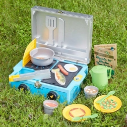 Dit speelgoed ondersteunt fantasierijk spel en laat kinderen het bereiden van eten en koken in de natuur naspelen.