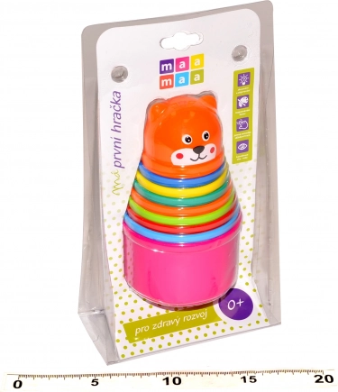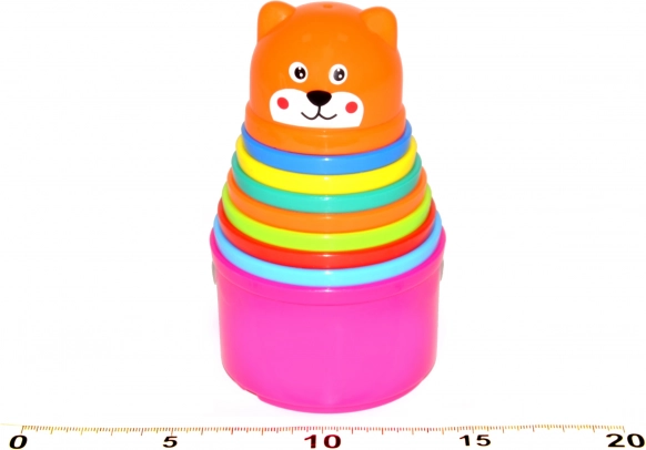 De bekertjes kunnen eenvoudig in elkaar of op elkaar gestapeld worden om een stabiele piramide te bouwen. Spelen met de toren vermaakt kinderen thuis en onderweg en ondersteunt tegelijkertijd hun psychomotorische ontwikkeling.