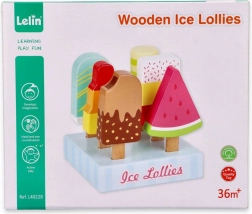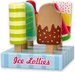 Zes originele houten ijslolly’s met verschillende vormen en patronen inspireren tot fantasierijk spel en prikkelen de verbeelding.