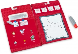 Vier stevige kartonnen bladen “wissen” het beeld na het drogen, zodat kinderen keer op keer kunnen kleuren.