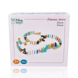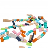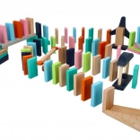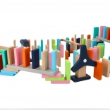 Ontdek het leuke en educatieve kleurrijke houten domino met 128 onderdelen, dat kinderen stimuleert om creatieve banen en kettingreacties te bouwen. De set met draaimolen, windmolentje, poort met knikker, trapjes en bruggen ontwikkelt de fijne motoriek, het logisch denken en het ruimtelijk inzicht. Geschikt vanaf 3 jaar, ideaal voor familie- en groepsspel.