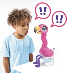 Maak kennis met de roze flamingo die elk kind aan het lachen maakt. Hij houdt ervan om gevoerd te worden met speciaal Aqua-zand, waarna hij snel moet “poepen” – dit grappige “poepen” is veilig en het zand kan opnieuw worden gebruikt. De flamingo kletst bovendien graag, herhaalt wat hij hoort en laat ook zang en dans zien.