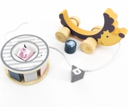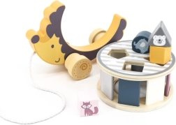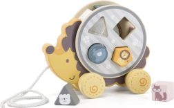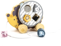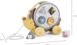 Houten egeltje op wieltjes met een vormensorteerder stimuleert de fijne motoriek, oog-handcoördinatie en het leren van vormen en kleuren. Dankzij het trektouw motiveert het kinderen om te bewegen en zelfstandig te lopen. Veilige afwerking, gladde randen en hoogwaardig materiaal zijn ideaal voor kinderen vanaf 2 jaar.