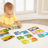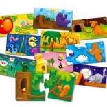 Far Far Land Puzzel is het ideale educatieve speelgoed voor kinderen vanaf drie jaar. Deze set bevat 10 puzzelafbeeldingen, waarvan elk uit twee stukken bestaat – op de ene staat het diertje en op de andere zijn onderkomen. Met dit spel leren kinderen verschillende soorten dieren en hun omgevingen herkennen, waardoor ze hun sorteervaardigheden en combinatievermogen ontwikkelen.