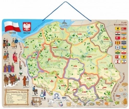 De kaart voldoet aan de speelgoedveiligheidseisen (CE). Dankzij de hoogwaardige afwerking en het aantrekkelijke ontwerp is het een uitstekende hulp bij de eerste kennismaking met de geografie van Polen.