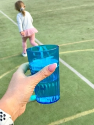 De geribde vorm ligt goed in de hand, ook voor kleine handjes. Het volume van 170 ml is precies goed voor de eerste drankjes.