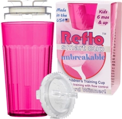 Reflo stimuleert de natuurlijke manier van drinken aan een open rand en helpt kinderen bij de overgang van fles naar gewone beker.