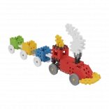 Dankzij tandwielen en draaiverbinders ontstaan functionele modellen – helikopters, vliegtuigen en voertuigen. Kinderen leren spelenderwijs de principes van beweging en overbrengingen.