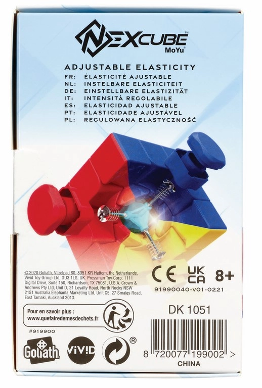 De Nex Cube van Goliath is een unieke kubus, vervaardigd door het bekende en gerenommeerde merk MoYu. In plaats van stickers die makkelijk kunnen krassen, gebruikt de kubus volledig gekleurde kunststoffen. Dankzij het gebruik van door-en-door gekleurde kunststoffen in plaats van een gelakte toplaag blijven de zijden van de kubus ook na enkele maanden gebruik hun kleuren behouden. De centers van de kubus (middenvlakjes) kunnen worden verwijderd; daaronder zit een schroef waarmee de "druk" op elke zijde kan worden afgesteld. De kubus heeft speciaal geprofileerde onderdelen waardoor hij soepel hoeken "snijdt", wat het leggen nog verder versnelt.