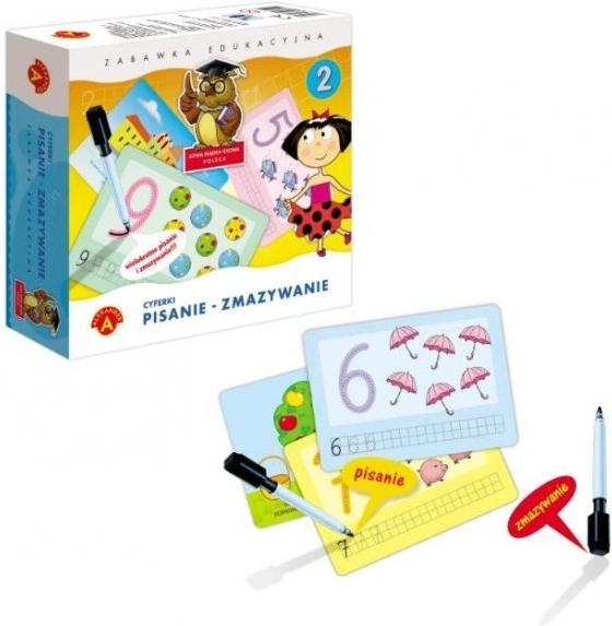 Een leuke educatieve game voor kleuters die kinderen helpt de juiste vormen van cijfers te leren, ze te herkennen en de basis van het rekenen onder de knie te krijgen. Dankzij herbruikbare kaarten met een uitwisbare stift oefenen kinderen ook fijne motoriek, observatievermogen en concentratie – allemaal op speelse wijze.