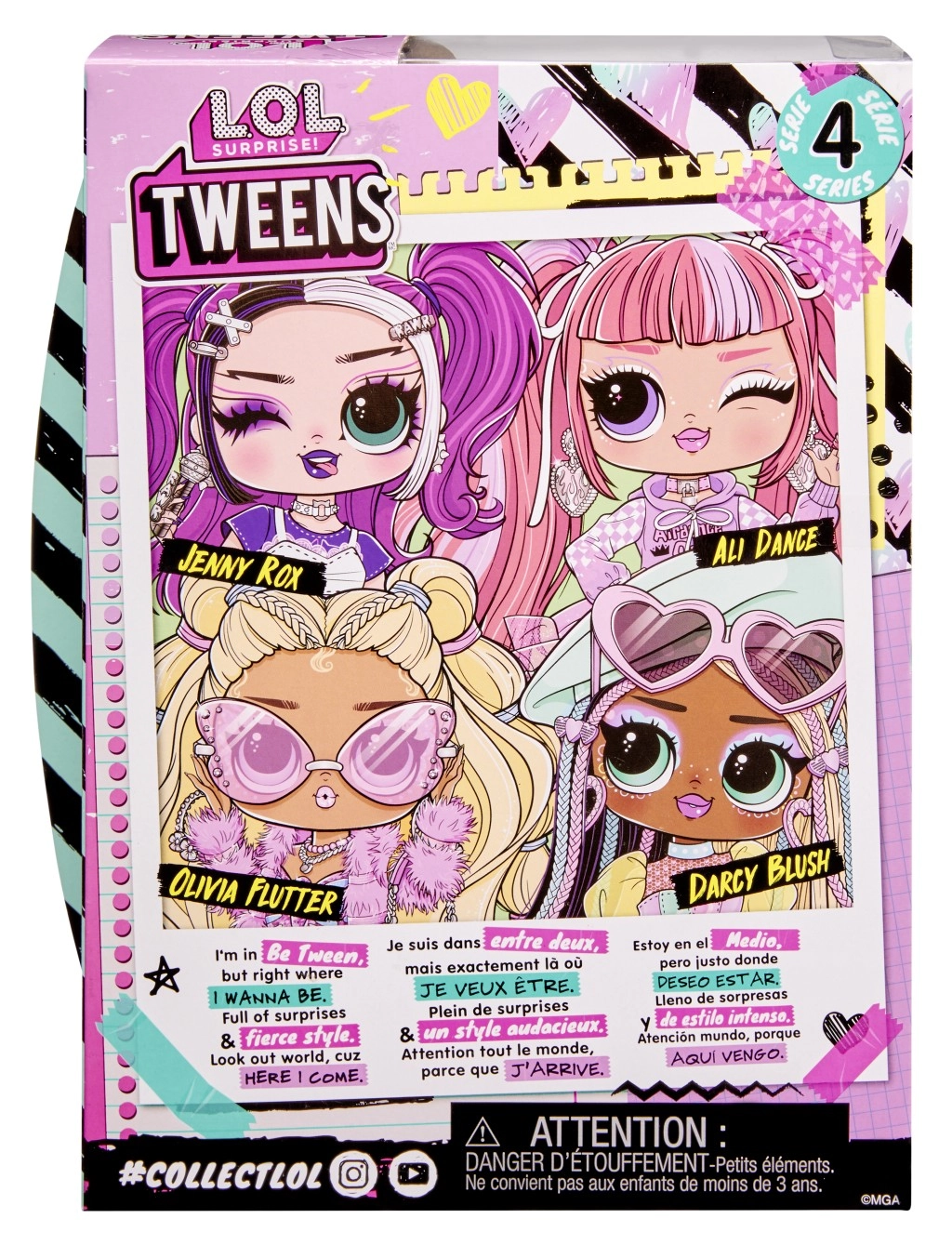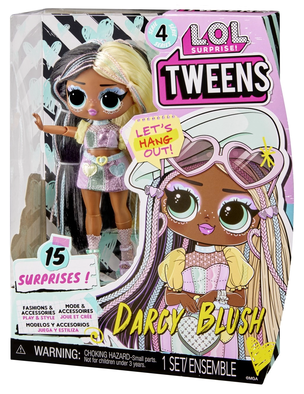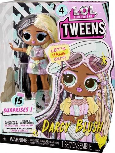 Maak kennis met de L.O.L. Surprise Tweens-pop - Darcy Blush, de oudere zus van het geliefde personage Flipside! Pak 15 verrassingen uit en steel de show met haar stijlvolle outfits en accessoires. De pop is klaar voor een creatieve dag vol poëzie en schilderijen.