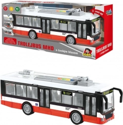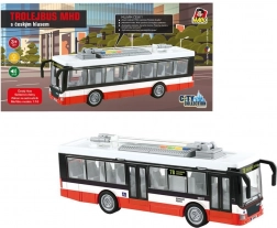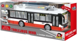 Deze gedetailleerd uitgewerkte trolleybus biedt kinderen een authentieke ervaring van stadsvervoer. De speelgoedbus speelt halte-aankondigingen in het Tsjechisch af (Hoofdstation, Stadstheater, Dierentuin) en is voorzien van aantrekkelijke lichteffecten. Dankzij de vliegwielaandrijving hoef je de trolleybus alleen maar een zetje te geven en hij rijdt vooruit.