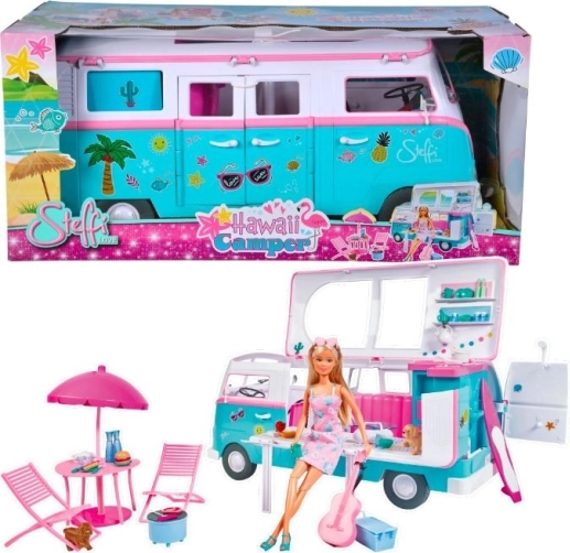 De pop Steffi met caravan Steffi Love is het ideale cadeau voor alle kleine fans van reis- en avonturenspellen. Deze prachtige caravan is volledig uitgerust met een uitklapbare keuken, een woonkamer, een bed en een tafel voor realistische speelervaringen. Ook zijn er diverse accessoires inbegrepen, waarmee kinderen hun creativiteit kunnen ontwikkelen en onvergetelijke momenten vol plezier beleven.