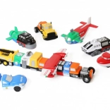 Alle themasets zijn onderling compatibel, zodat je modules door de hele collectie kunt combineren en je vloot kunt uitbreiden. Tijdens het bouwen oefenen kinderen creativiteit, hand‑oogcoördinatie en logisch denken. Drie voertuigen met trek‑en‑rij (pull-back) aandrijving zorgen voor dynamische ritten en eindeloze speelscenario’s.