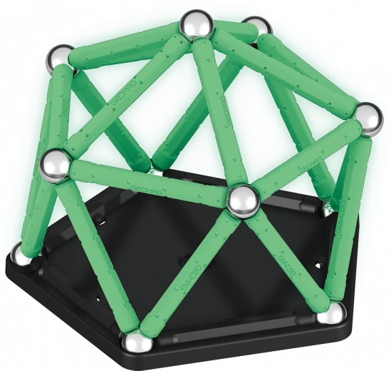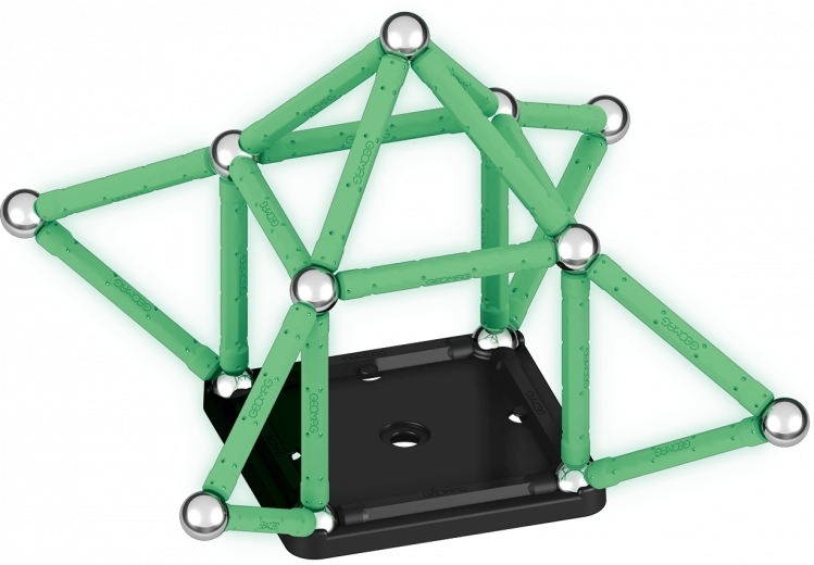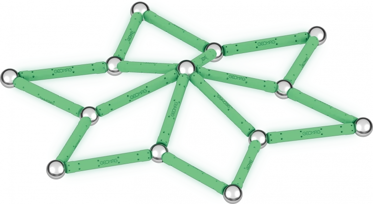 GEOMAG Glow is een originele magnetische bouwset waarmee je een onbeperkt aantal constructies kunt maken met magnetische staafjes en stalen kogeltjes. Dankzij de fosforescerende onderdelen zullen je modellen na het opladen in het donker prachtig licht geven – ideaal voor leuke experimenten en aantrekkelijke demonstraties.