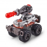 Eenvoudig te monteren truck met massieve banden, gedetailleerde carrosserie en een werkende launcher voor gevechten en stunts.