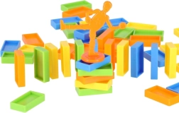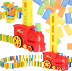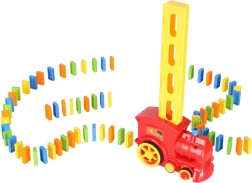 Set bevat: kleurrijke locomotief, stenenverdeler, 80 stuks domino en een plastic cactus als hindernis.