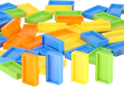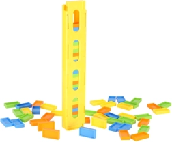 Deze kleurrijke locomotief met stenenverdeler legt zelfstandig domino in vaste afstanden en kondigt elke plaatsing met een geluid aan. Kinderen kunnen de rijrichting eenvoudig kiezen door de schoorsteen te draaien en zo gevarieerde routes en patronen maken. Levendige kleuren en een aantrekkelijke vormgeving trekken de aandacht en motiveren tot langdurig spel.