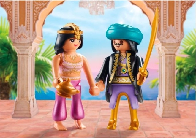 Verwelkom je gasten met een stijlvol koninklijk paar uit het Oosten. De koningin en de koning zijn gekleed in extravagante outfits, klaar voor elke grootse gebeurtenis.
