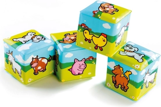 Zachte foamen bijtkubus met kleurrijke dierenillustraties die baby’s vanaf de geboorte plezier geeft, zintuiglijke ontwikkeling en fijne motoriek stimuleert en vrij van ftalaten en veilig om op te bijten is.