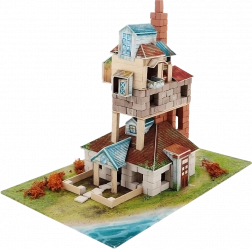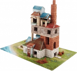 • Authentieke materialen: bakstenen gebakken op 1000 °C, echt hout, kartonnen decoraties, gras en rood mos.