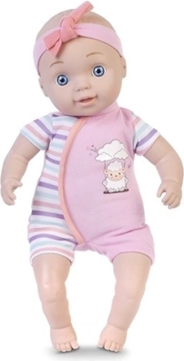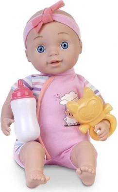Druk zachtjes op het buikje en de pop zegt “mama”, “papa”, huilt en lacht – net als een echte baby.