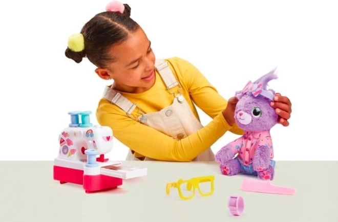 Het pluchen huisdiertje verschijnt in het begin als een verdrietig, zacht bolletje. Na een bad, kammen en verzorging ontdek je of je een katje of een hondje hebt. Neem daarna de naaimachine en gebruik een van de drie spoelen om prachtige outfits voor je huisdiertje te maken. Kies het boven- en onderstuk en maak de look af met een haarband of pet.