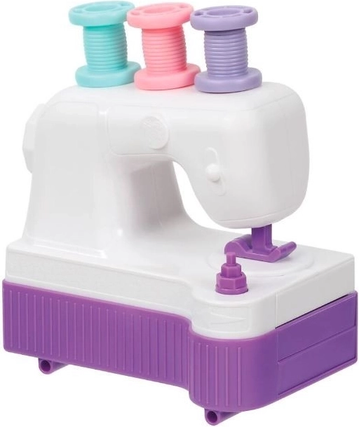 De set bevat ook stickers om de naaimachine te versieren en twee verschillende kledingvarianten voor paarse huisdiertjes, afhankelijk van of het om een kat of een hond gaat.
