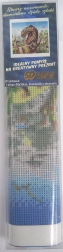 In de verpakking vind je een complete set: canvas met voorbedrukte afbeelding en kleeflaag, applicatiepen, schaaltje, was en een set gekleurde steentjes. Voor prettig werken wordt aangeraden de beschermfolie van het canvas slechts gedeeltelijk te verwijderen, zodat de lijmlaag schoon blijft en de steentjes goed hechten.