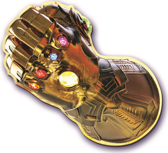 Houten dubbelzijdige puzzel TREFL Marvel: Oneindigheids-handschoen, 505 stukjes. Laserprecisie, 70 unieke stukjes, eco-verpakking. Afmeting 28,3 × 51,9 cm.