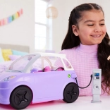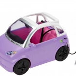 Neem je poppen mee op een spannende rit in een moderne cabriolet met een open dak. De auto heeft een stijlvolle paarse carrosserie met realistische details, inclusief veiligheidsgordels en een achteruitkijkspiegel.