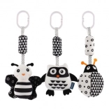 Dankzij de universele clip bevestig je het speeltje eenvoudig aan de kinderwagen, het ledikant of de luiertas. Kies uit 3 schattige varianten diertjes die elke baby zullen bekoren en wandelingen en rustmomenten veraangenamen.