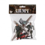 De set bevat twee gedetailleerde soldaten in groen camouflageschrift en een vliegtuig, ideaal voor het realistisch naspelen van veldslagen.
