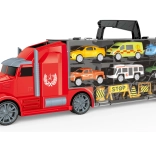 De set bevat 5 autootjes en 1 helikopter, zodat de pret meteen na het uitpakken kan beginnen. De praktische uittrekbare handgreep aan de bovenzijde van de aanhanger maakt dragen eenvoudig. Geleverd met Tsjechischtalige verpakking.