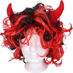 Maak je duivels- of duivelinnenkostuum helemaal af. Deze pruik met rode horens biedt een felle rode haarkleur met zwarte lokken voor een extra hels effect. Dankzij het universele model is hij gemakkelijk op te zetten en behoudt hij zijn vorm gedurende het hele feest.