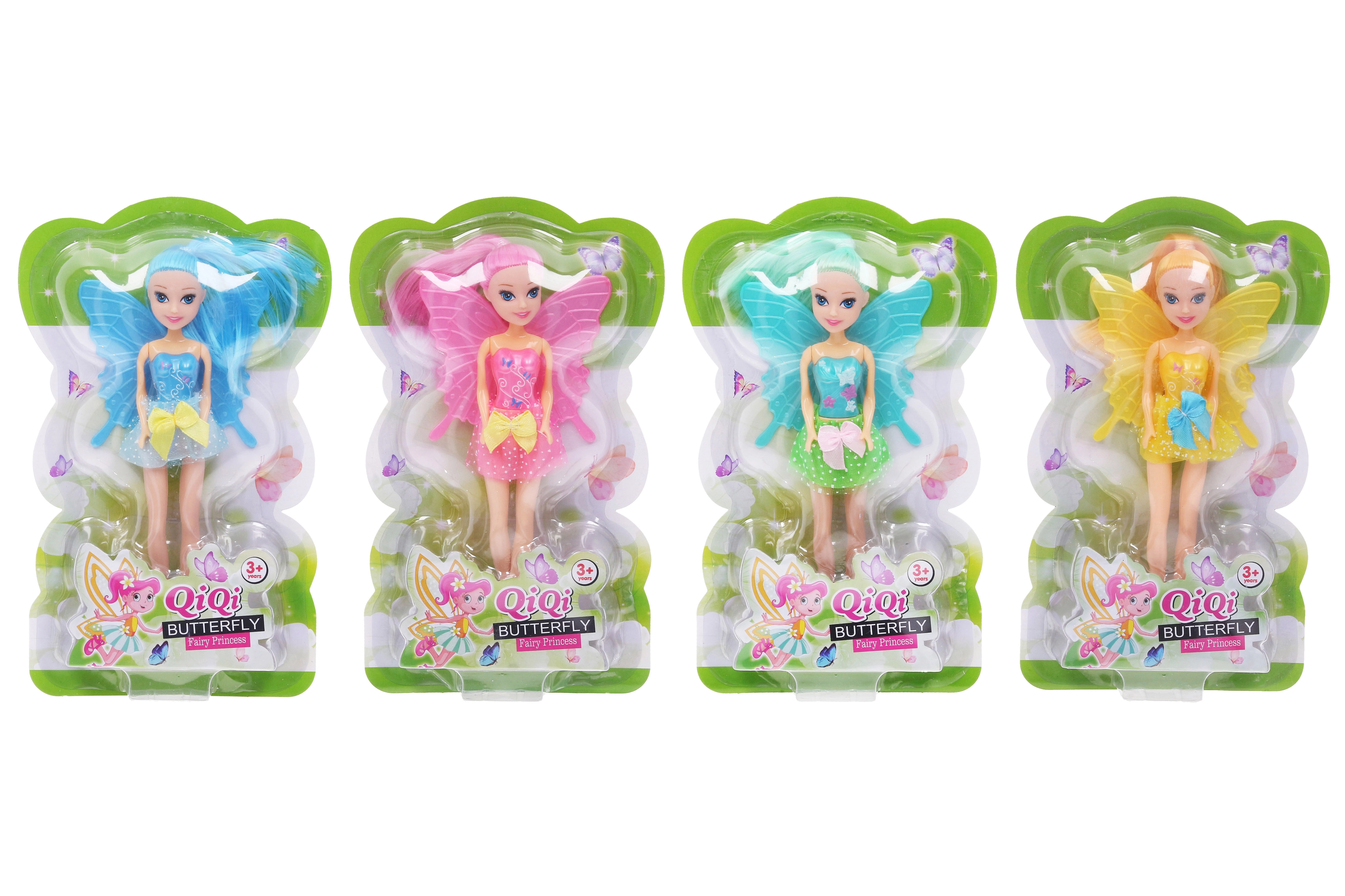 Betoverende fee-pop 19 cm in 4 haarkleuren (groen, roze, blauw, geel). Licht, schattig en ideaal voor creatief kinderspel en als cadeau.