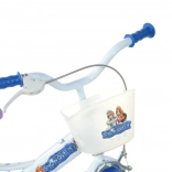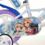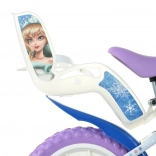 Lichte en stabiele 12" kinderfiets van Dino Bikes in Sneeuwkoningin-stijl, met rijke uitrusting en veilige uitvoering. Voorzien van massieve banden zonder lekrisico, voorrem en vaste overbrenging (doortrapper) voor eenvoudig starten. Inclusief zijwieltjes, mandje en poppenzitje. Ideaal voor kinderen met een lengte van 87–110 cm, gewicht 6,5 kg, draagvermogen 40 kg.