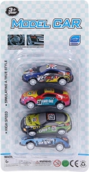Ontdek het plezier met onze set van vier autootjes, elk met een grootte van 6,5 cm, die rijden op vrij draaiende wielen.