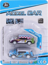 Set van twee autootjes met vrij draaiende wielen is ideaal voor kleine autofans. Met een lengte van slechts 6,5 cm zijn ze perfect voor kleine handjes en creatief spel.