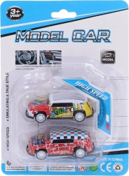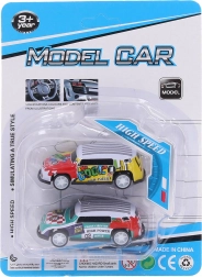 Twee verschillende autootjes in de verpakking bieden meer speelmogelijkheden.