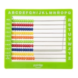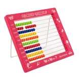 Rijen gekleurde kralen vereenvoudigen optellen en aftrekken en ondersteunen het visueel inzicht in hoeveelheden.