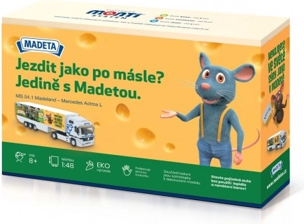 Bouwset Monti System Madeland Mercedes Actros L is een geweldige bouwset die je kunt maken zonder lijm en verf te gebruiken in de schaal 1:48. Dankzij slimme mechanismen klikken de delen eenvoudig in elkaar.